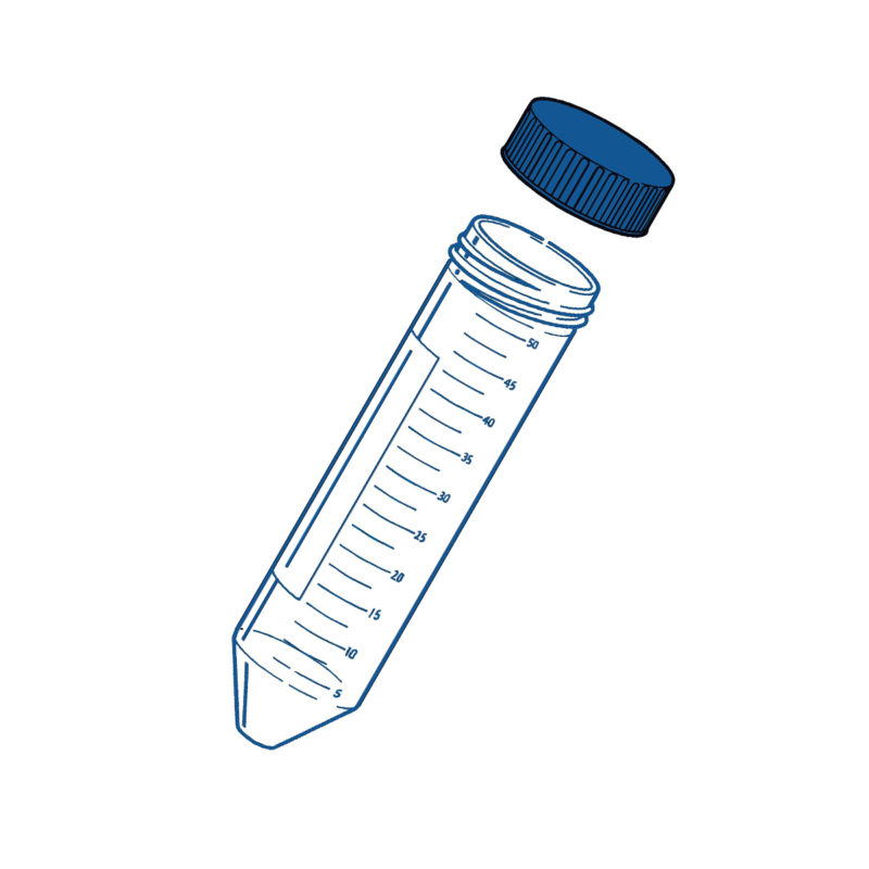 - Číre, sterilné, polypropylénové skúmavky so závitom a modrým uzáverom z HDPE (High density polyethylén)