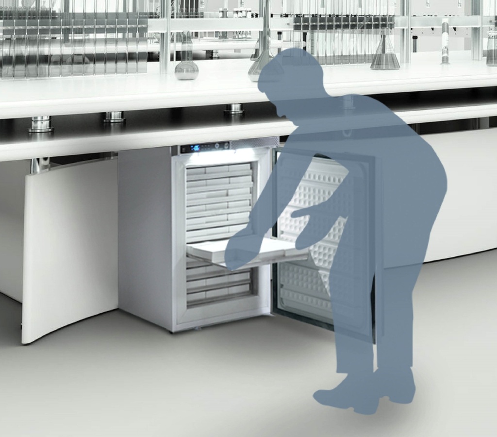 Hlbokomraziaca pultová mraznička Nordic Lab ULT U100 pre použitie v laboratóriách a v zdravotníctve chladí až do -86°C.